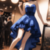 wearing a royal blue baseball jacket with cream-colored sleeves, cream-colored over-the-knee socks, light brown platform shoes, and a cream-colored crossbody bag, beige pleated mini skirt,