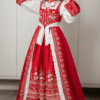 Egyptian ethnic dress, (light sky blue color:1.1), ((embroidery details: 1.3)) long-sleeved dress with (geometric and floral patterns), (black and white embroidery: 1.2) in center of dress, (design details: 1.3), full-length, front V-neckline, (sleeve length: 1.1), dress is medium length to floor, ((Light sky blue color)), (fine embroidery stitches: 1.3),.