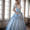 A two-piece outfit, possibly from the late 90s or early 2000s, with a transparent spaghetti strap crop tank top with a V-neck and brown lace trim. The tank top has a paisley-like print with images of the sun and moon in shades of brown, beige, and pale blue. The skirt is short and tiered, with multiple ruffles in the same patterned see-through fabric. Brown lace trim accents the waist and overlapping ruffled edges of the skirt. The colors are subdued earth tones and have a vintage aesthetic. The style suggests a late 90s to early 2000s Boho or vintage aesthetic.