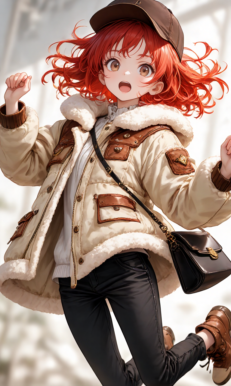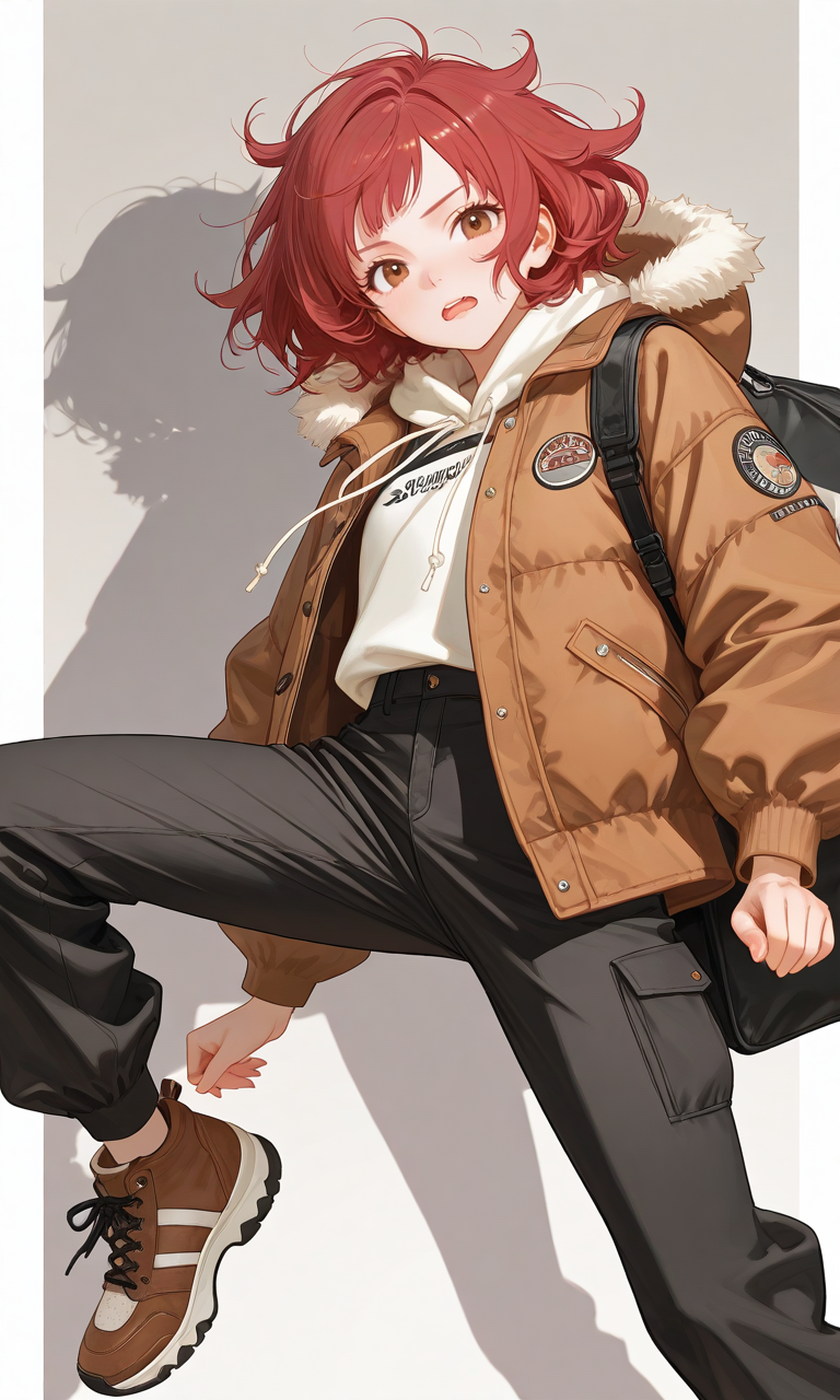 A cozy winter casual outfit, anime illustration style, outfit design only.