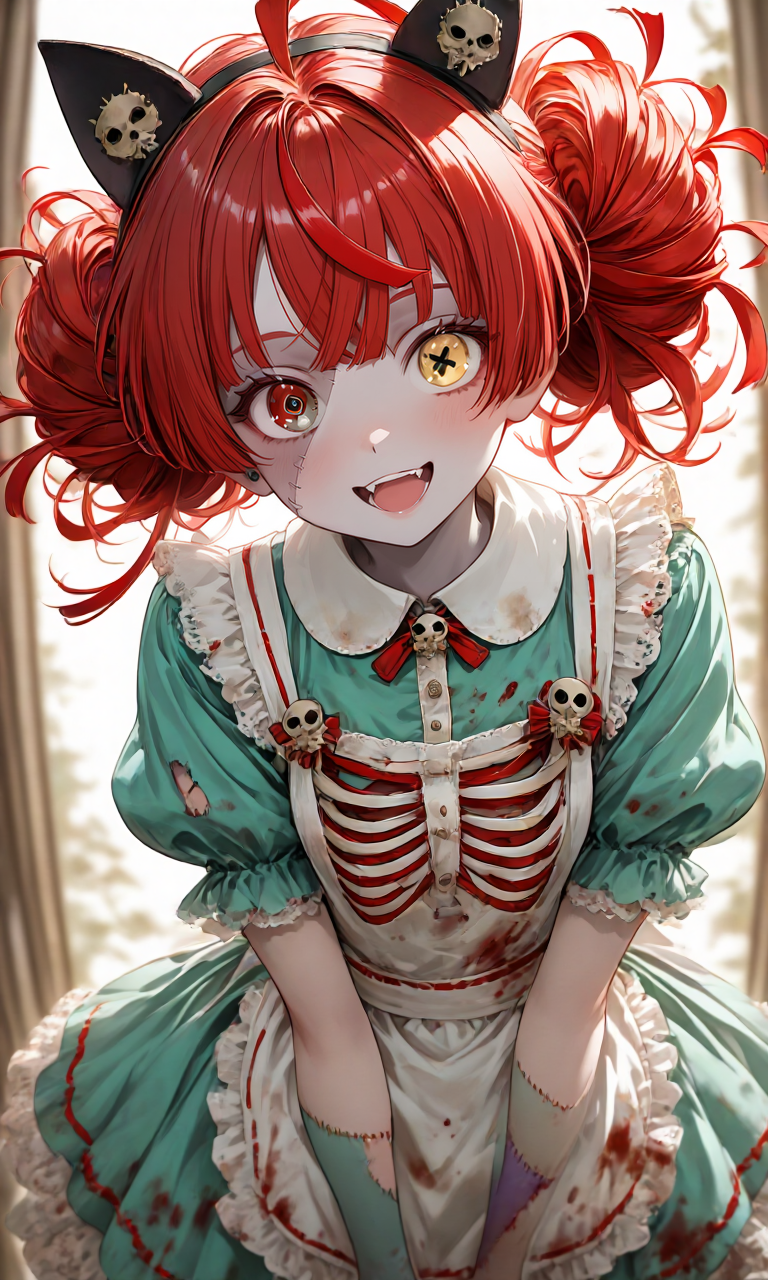 blood splatter, horror maid, undead bride style,