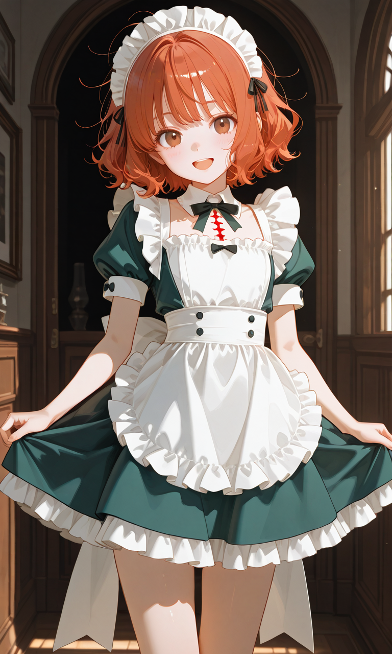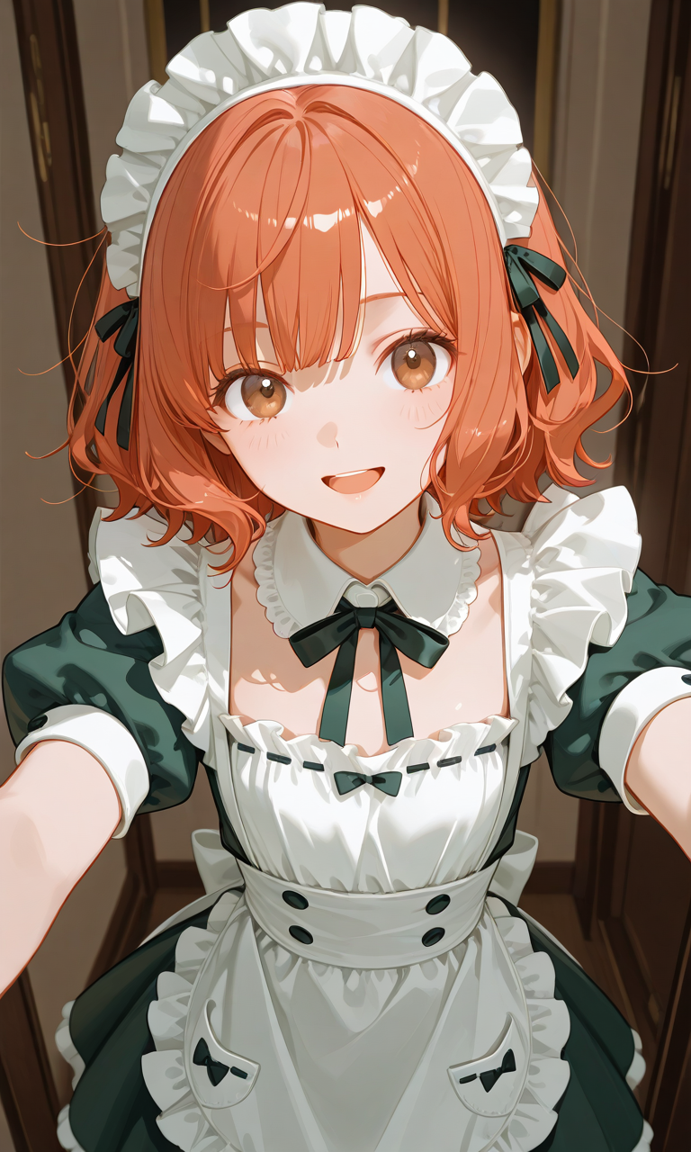white rounded collar, classic maid uniform style,