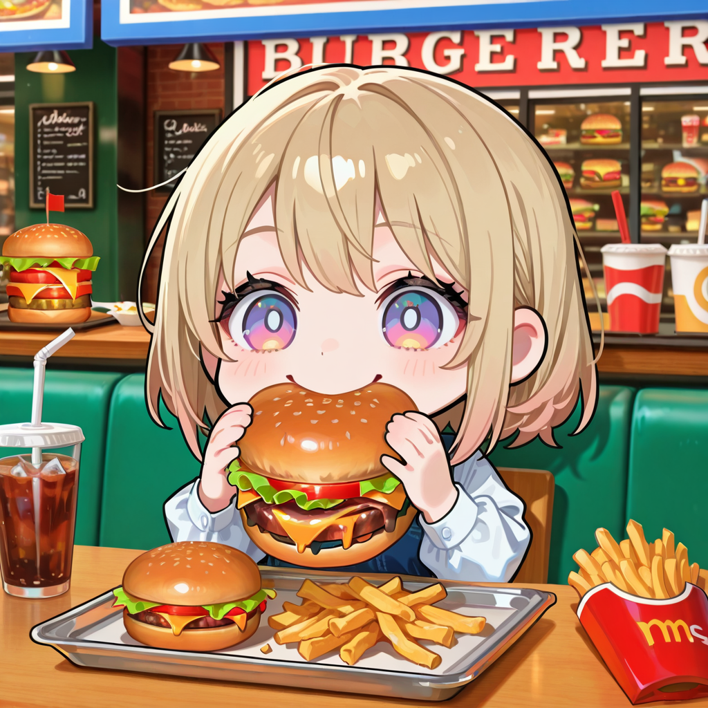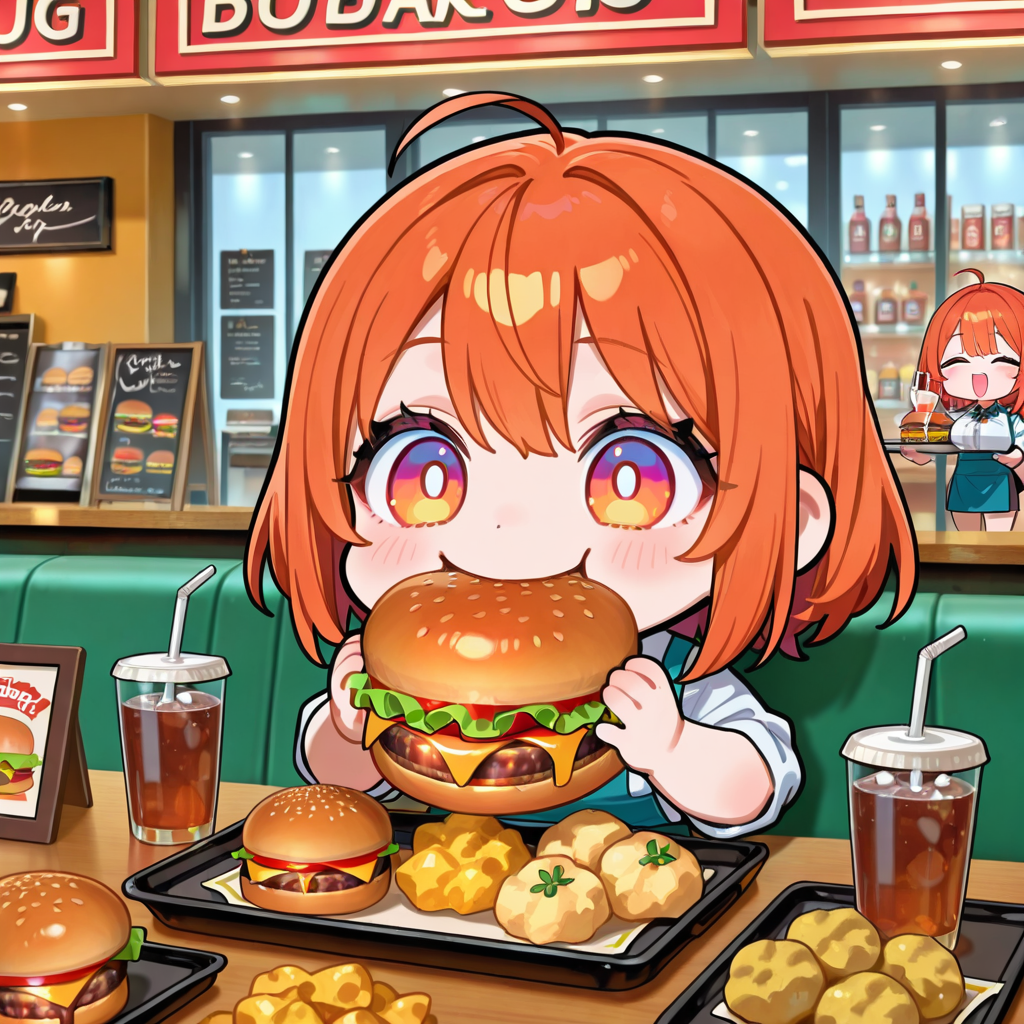 これがプロトタイプです。キャラの髪の毛とドリンクの数、ポテトとバーガー大杉💦