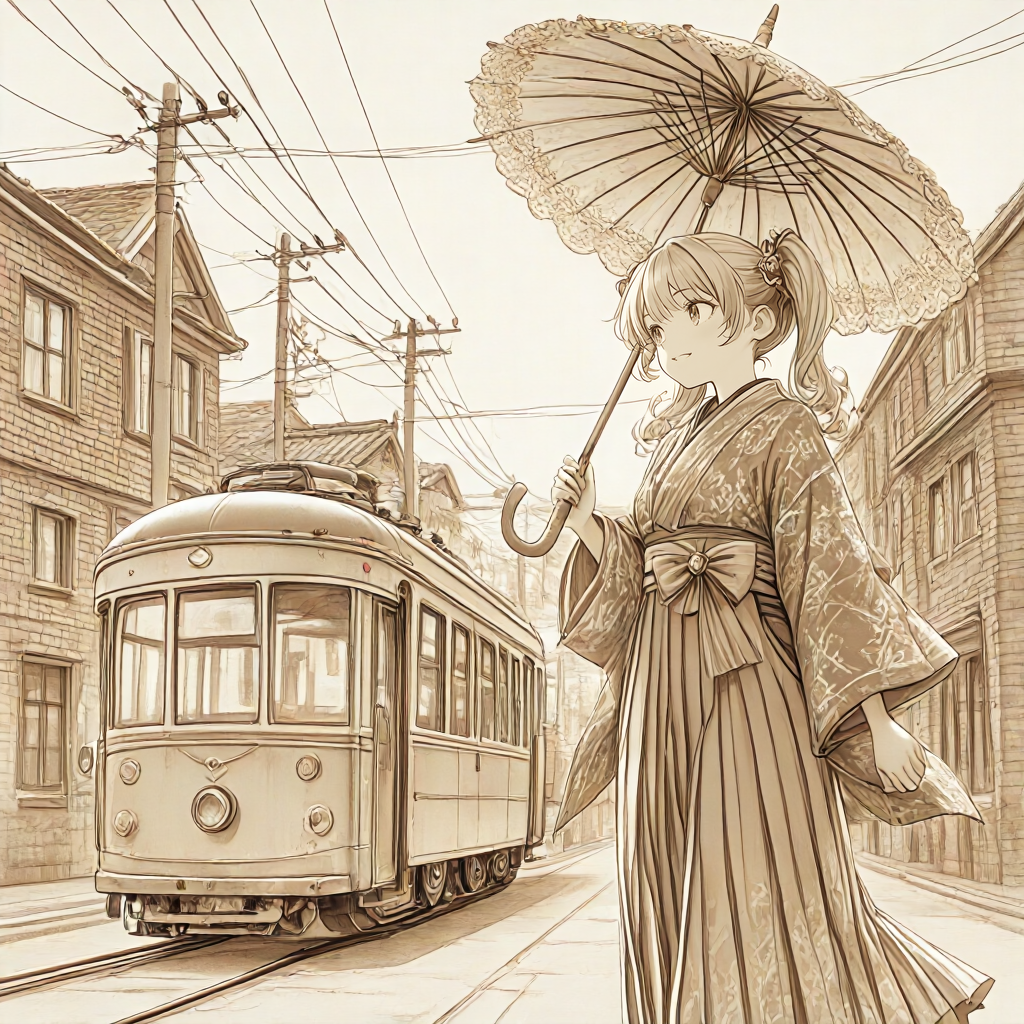 チンチン電車の横を日傘の女の子が歩いている少女漫画的な構図でしたけど達成できず。