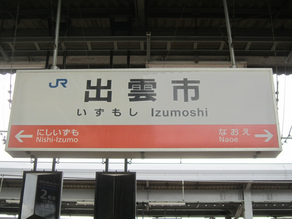 左側から、にしいずも→やみ、Nishi-Izumo→Yami。