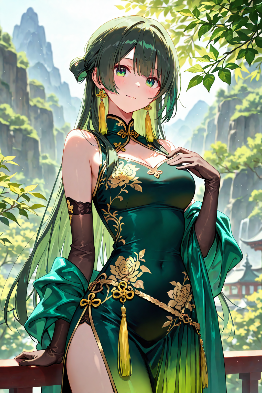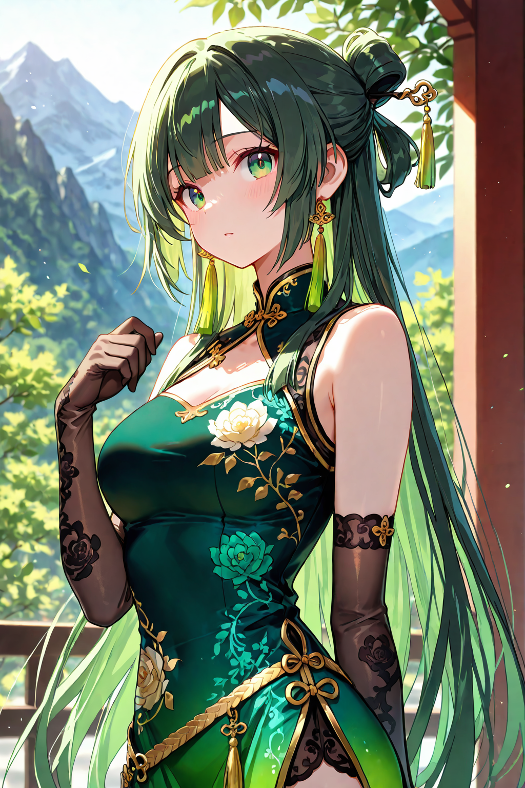 ちちぷいのお題が「緑」だったので、グリーンのカラーを主体に据えて中華風のセットアップを。