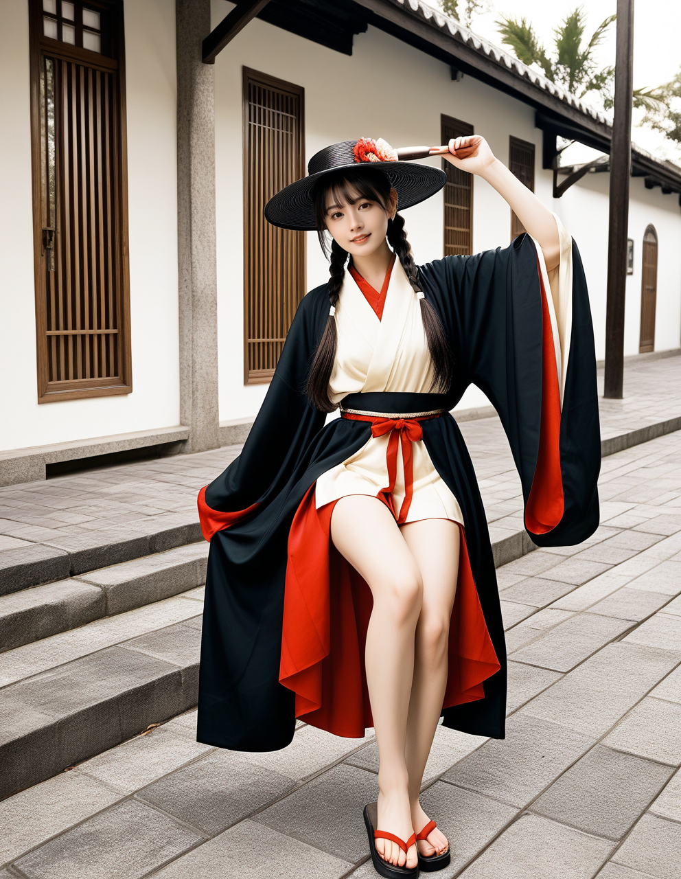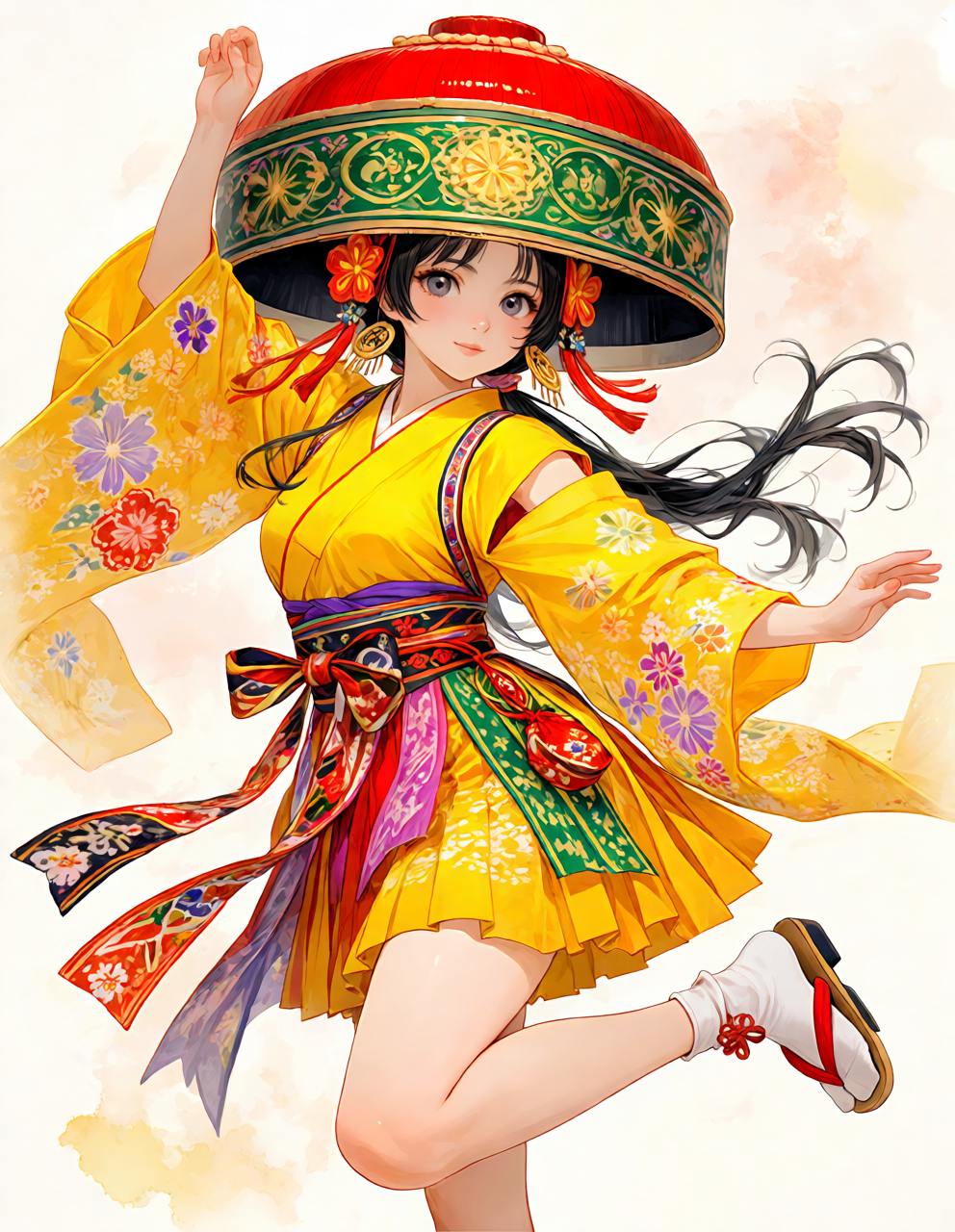 dynamic traditional dance costume, not formal kimono,