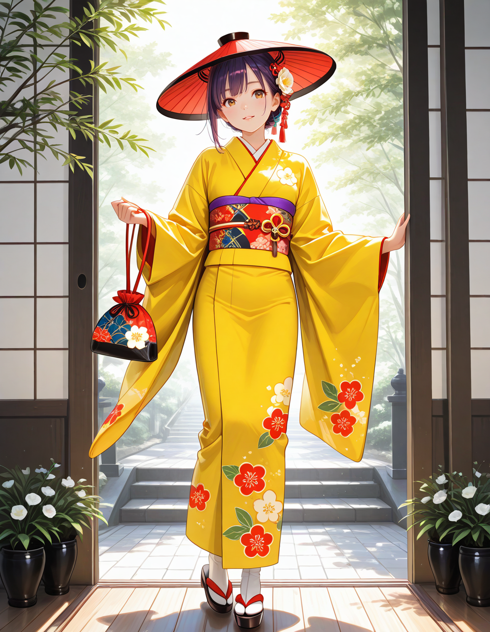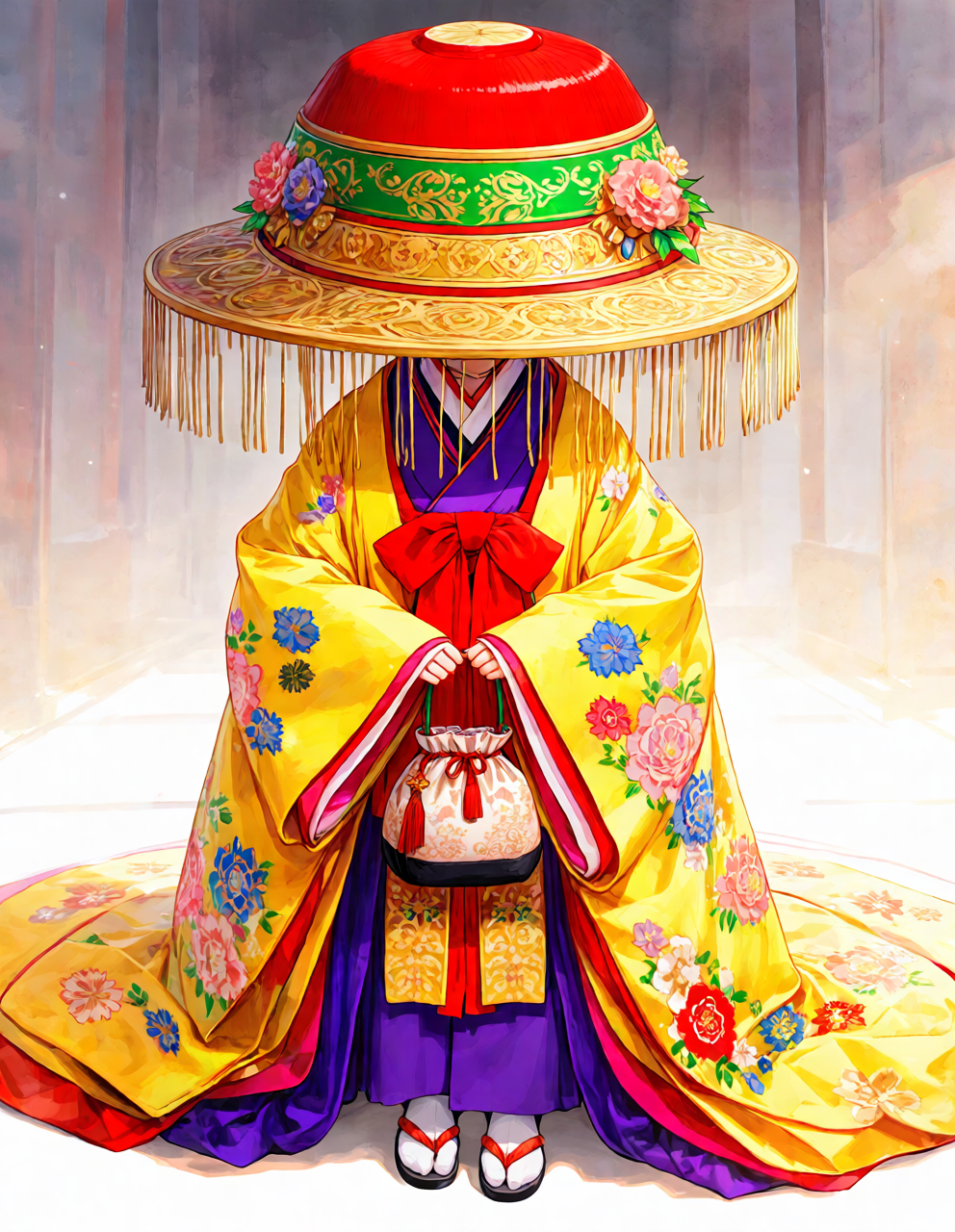 bright yellow kimono,