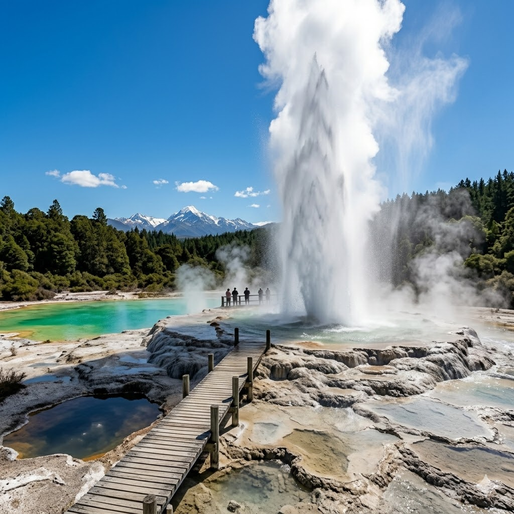 powerful geothermal geyser erupting in Rotorua, New Zealand,